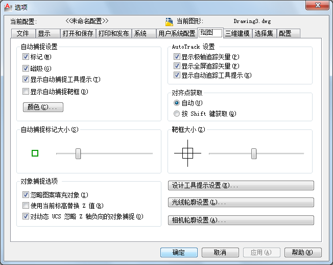 设定多个编辑功能的选项(包括自动捕捉和自动追踪)。