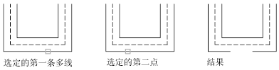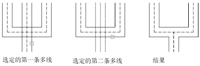 在两条多线之间创建合并的十字交点。选择多线的次序并不重要。