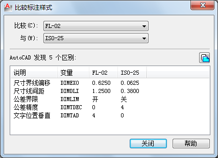 比较两种标注样式的特性或显示一种标注样式的所有特性。