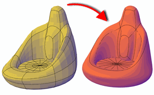 利用适用于三维实体的实体建模功能。转换网格时,可以指定转换的对象是平滑的还是镶嵌面的,以及是否合并面。