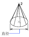 指定圆锥体轴的端点位置。轴端点是圆锥体的顶点,或圆台的顶面圆心(“顶面半径”选项)。轴端点可以位于三维空间的任意位置。轴端点定义了圆锥体的长度和方向。