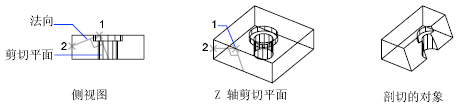 - 指定平面 Z 轴(法向)上的点。指定用于定义垂直于剖切平面的轴的点。