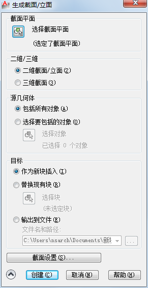 选择截面的对象时,请暂时关闭此对话框。完成对象选择后,按 Enter 键重新显示“生成截面/标高”对话框。