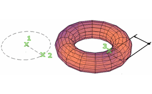 通过指定三点设定网格圆环体的位置、大小和旋转面:圆管的路径通过指定的点: