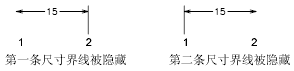 不显示尺寸线。“尺寸线 1”不显示第一条尺寸线,“尺寸线 2”不显示第二条尺寸线。(DIMSD1 和 DIMSD2 系统变量)