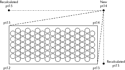 Point 15 needs to be moved along the current vector defined by point 12 to point 15 until it lines up with the new point 14. The vectors from 12 to 15, and from 14 to 15, must be perpendicular to each other. The same operation must be applied to recalculate the new location for point 13.