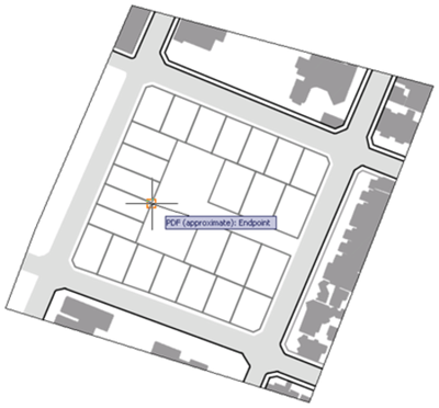 PDF 参考底图的对象捕捉与图形几何图形的对象捕捉类似。但是,可能无法按预期运行对象捕捉,这取决于 PDF 的创建方式。例如,如果 PDF 是从已扫描的建筑规划中创建的,则该 PDF 为光栅图像,而非基于矢量的图像。因此,无法使用对象捕捉。此外,PDF 中在 AutoCAD 外部创建的几何图形可能包含非标准捕捉对象,例如没有圆心的圆。