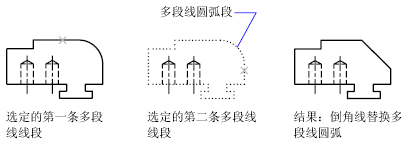 对整条多段线倒角时,只对那些长度足够适合倒角距离的线段进行倒角。在下面的例子中,某些多段线线段太短而不能进行倒角。