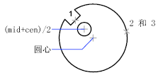 例如,输入 (mid+cen)/2 可以指定直线中点和圆心的连线的中点。