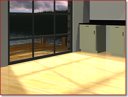 光线跟踪阴影有清晰的边和精确的轮廓;它们也可以透过透明或半透明对象传递颜色。因此,多窗格窗口的边框和竖棂的阴影将渲染。由于光线跟踪阴影在计算时不使用贴图,因此无需像使用阴影贴图阴影那样调整分辨率。